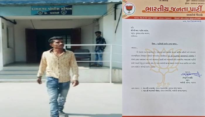 દામનગર નગર પાલિકાના ઉપપ્રમુખના પતિ અતુલ દલોલીયા પહેલાથીજ વિવાદોમાં રહ્યા છે. દારૂના સેવન સાથેના વીડિયો વાયરલ થયા હતા તેમજ પોલીસ મથક બહાર રોફ છાંટતા વાયરલ વીડિયો પણ સોશિયલ મીડિયા પર ચર્ચાનો વિષય બન્યા હતા. વારંવાર થતા આવા કૃત્યોને પગલે હવે ભાજપે ગંભીર પગલું લીધું છે.દામનગર પાલિકા ઉપપ્રમુખ ભાવનાબેન દલોલીયાના પતિ અતુલ દલોલીયાને 6 વર્ષ માટે જિલ્લા ભાજપ પ્રમુખ અતુલ કાનાણીએ સસ્પેન્ડ કર્યા છે. આ સાથે જિલ્લા ભાજપ પ્રમુખ અતુલ કાનાણીએ પ્રદેશ ભાજપ અધ્યક્ષ પાટીલને પત્રમાં જણાવ્યું કે સમાજમાં ભય અને અરાજકતા સાથે પાર્ટીની છબી ખરડાવવાની બાબતે અતુલ દલોલીયાને સસ્પેન્ડ કરવામાં આવ્યા છે.