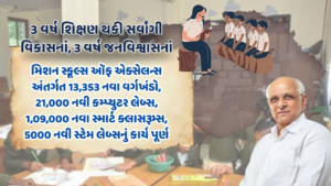- મિશન સ્કૂલ્સ ઑફ એક્સેલન્સ હેઠળ 13,353 નવા વર્ગખંડો, 21,000 કમ્પ્યુટર લેબ્સ, 1,09,000 સ્માર્ટ ક્લાસરૂમ્સ