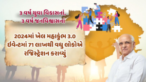 ગુજરાતે આધુનિક સ્પોર્ટ્સ ઇન્ફ્રાસ્ટ્રક્ચર વિકસાવીને ખેલાડીઓને અનુકૂળ નીતિઓ આપી. ખેલ મહાકુંભ 3.0માં 71 લાખથી વધુ લોકોએ ભાગ લીધો. રાજ્યને કોમનવેલ્થ ગેમ્સ 2030ની યજમાની કરવાનો ગૌરવ પ્રાપ્ત થયો.
