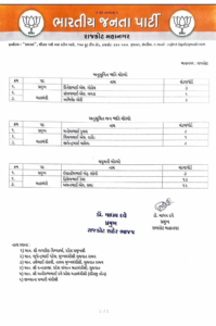 – મહિલા મોરચો: પ્રમુખ: લીનાબેન આર. રાવલ, મહામંત્રી: કિરણબેન વી. હરસોડા, માધવીબેન એ. જોગીયા